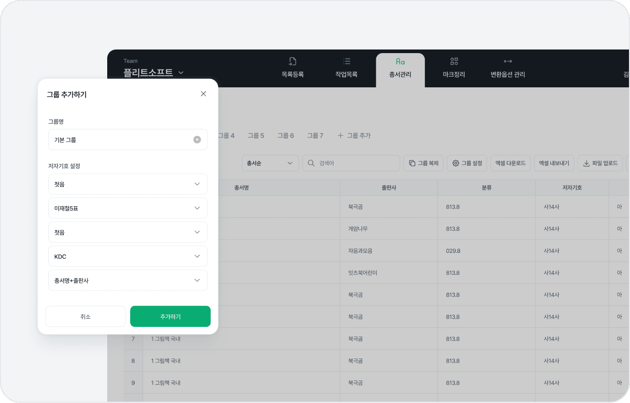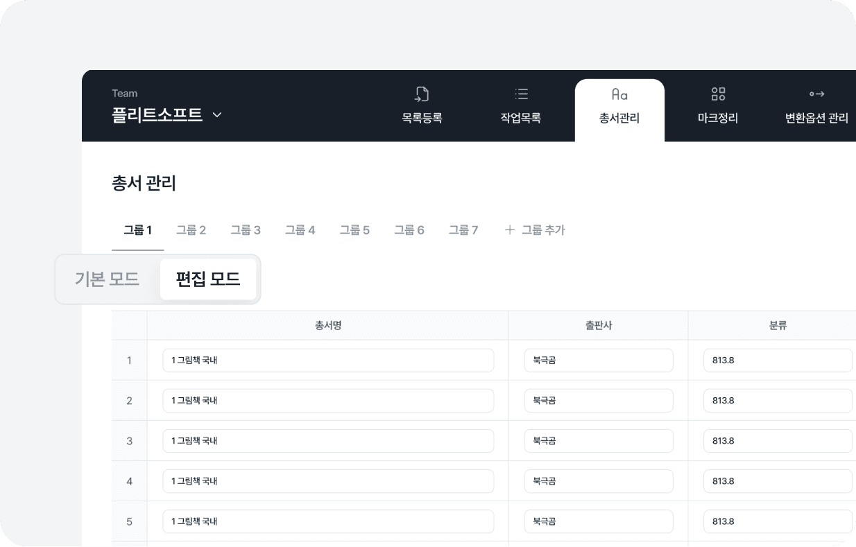 총서를 그룹으로 관리 가능하고