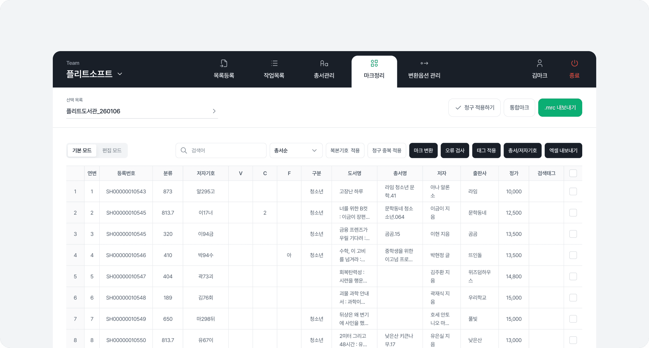 마크정리에서 리스트를 조회하고 필요한 항목을 편집모드로 빠르게 정리해 보세요.